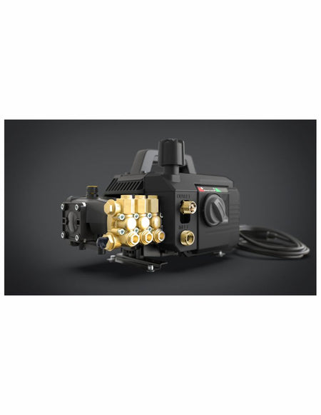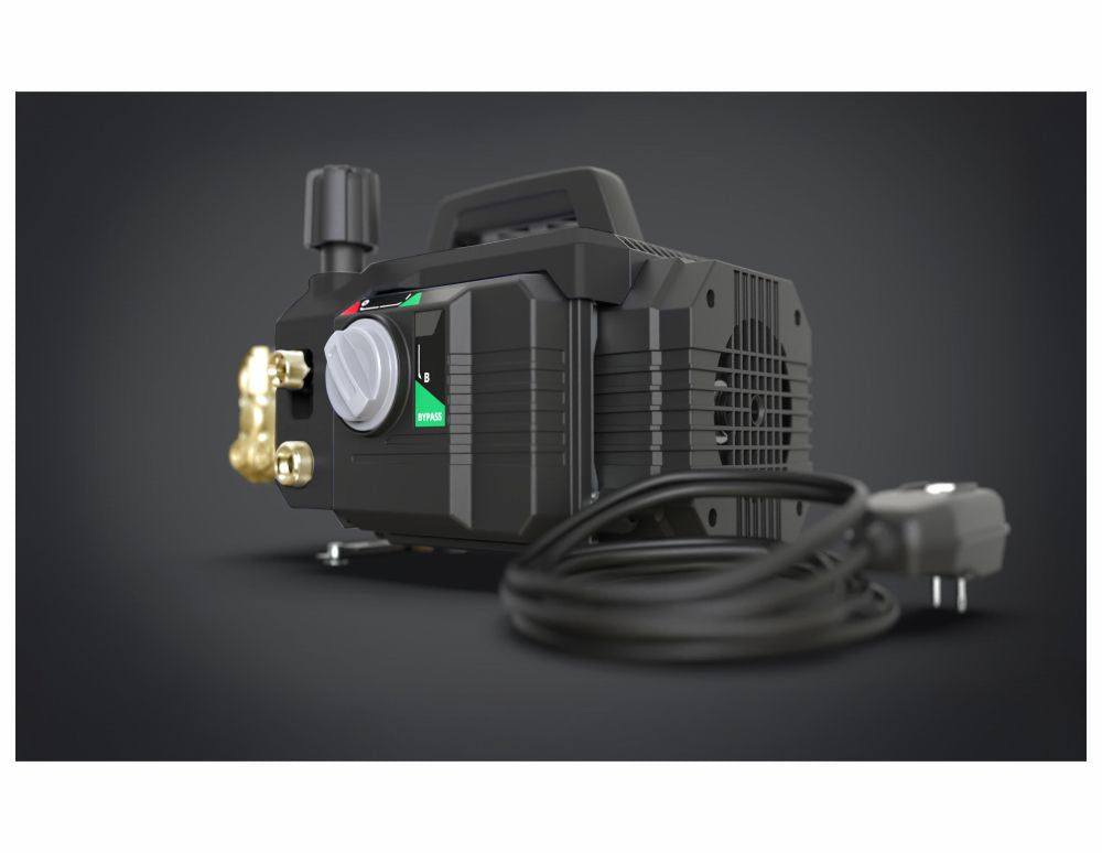 RS1900A Electric Pressure Washer is a rugged tool, artfully crafted for all your cleaning needs. The RS1900A is constructed with a forged brass head featuring a triplex pump with ceramic pistons and connecting rod. It additionally features a single phase 20 induction motor rated for 1600 Max PSI, 2.1 GPM, with thermal protection. This specialized unit features a Total Stop System plus full bypass and can handle water temperatures up to 122° F. Adjust and fine tune your pressure with the onboard unloader. The RS1900A comes with high performance accessories. Including a professional style trigger gun with a built in extension wand, a 15in. vari-spray lance, and a 25ft. high pressure hose. Mobility is no problem, quickly move around by top mounted handle.